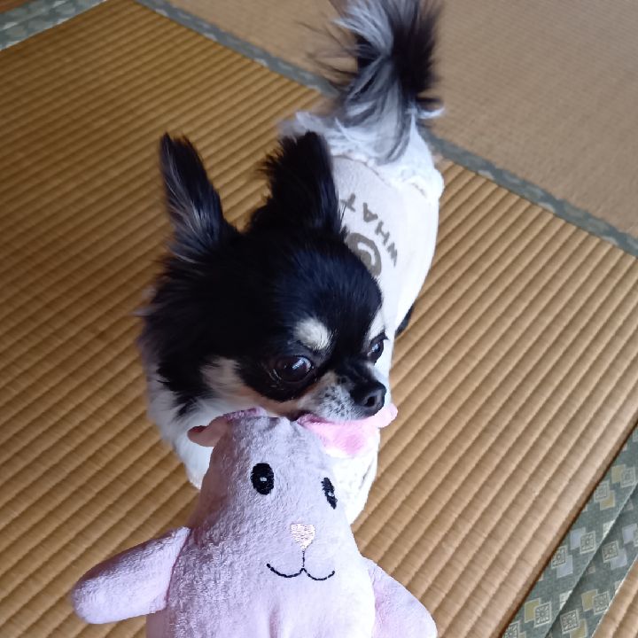 コメントありがとうございます😄 はーい♬お気に入りのうさぎさん🐰と引っ張りっこ楽しいよ🎶元気がいちばんワン🐶❤️💕❤️