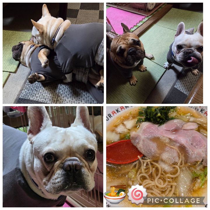 🍀こんばんは🌙😃❗今日は薄日でしたが寒さが違いましたね☀️そんな中又々神座さんでおいしいラーメン🍜 ほく&なんちゃには夕散歩🐾後におやつをウマウマしたよ👍ほくちゃんからおやつの催促🤣ご飯はなんちゃんより食べるしおやつもがっつり❗それで細マッチョ💪羨ましいよ🤣